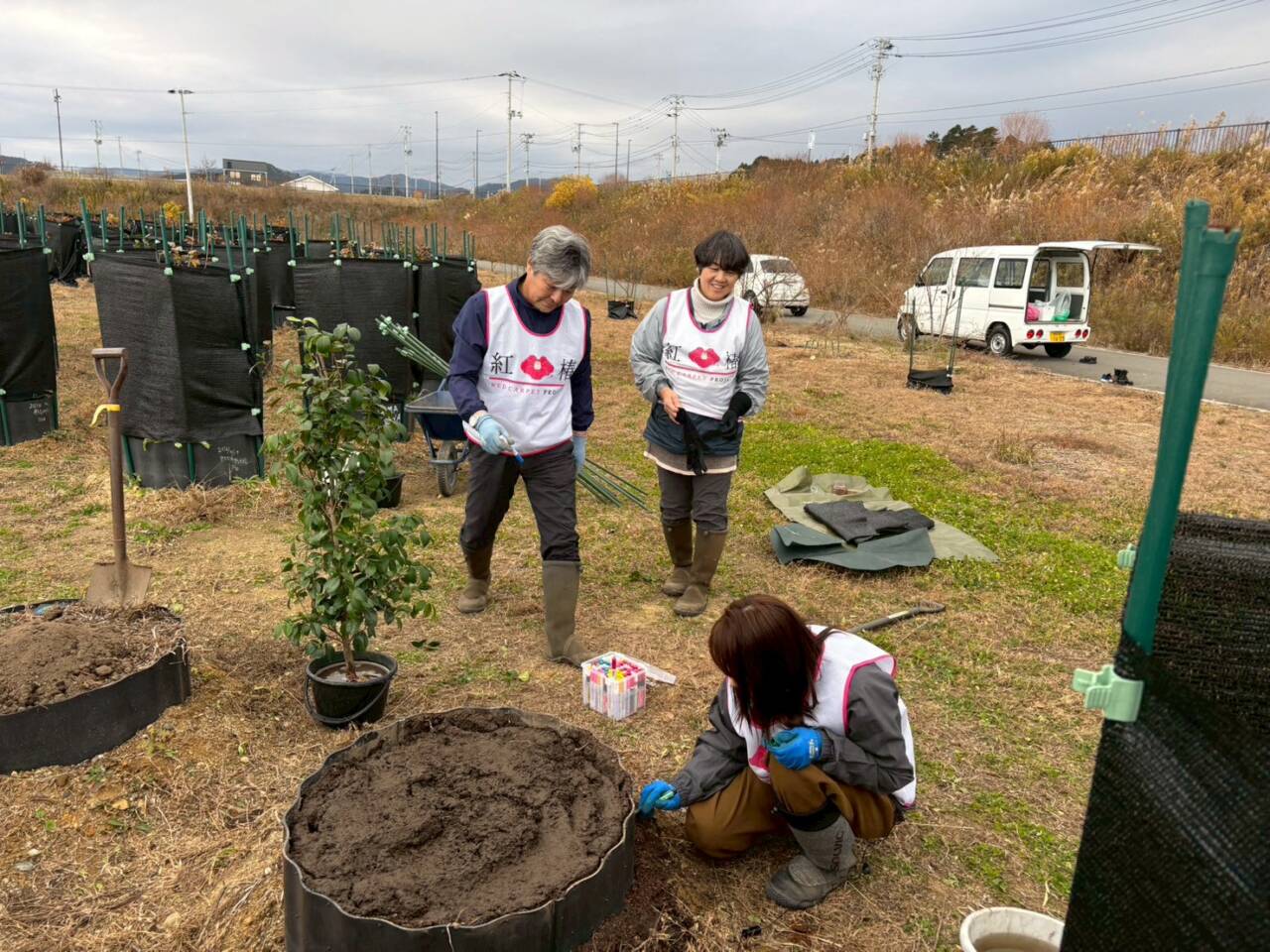 当日は、槇島と澤の二人で椿の苗木を植える体験を行い、椿の特性や障がい者支援の取り組みについて学んでまいりました。
