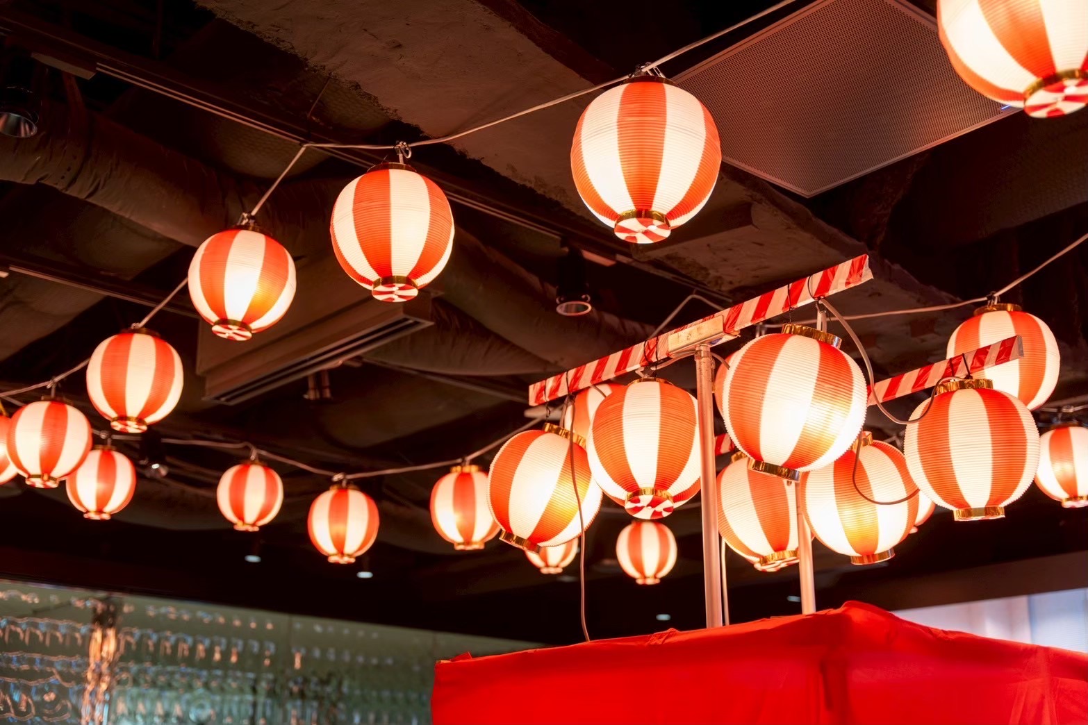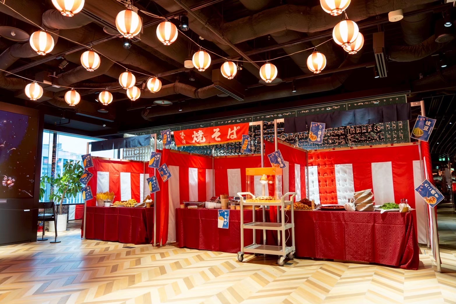 お祭りの屋台風装飾もご用意可能です。テーマに合わせた空間装飾もイベントプロデュース会社ならでは(別途搬入出費がかかります)