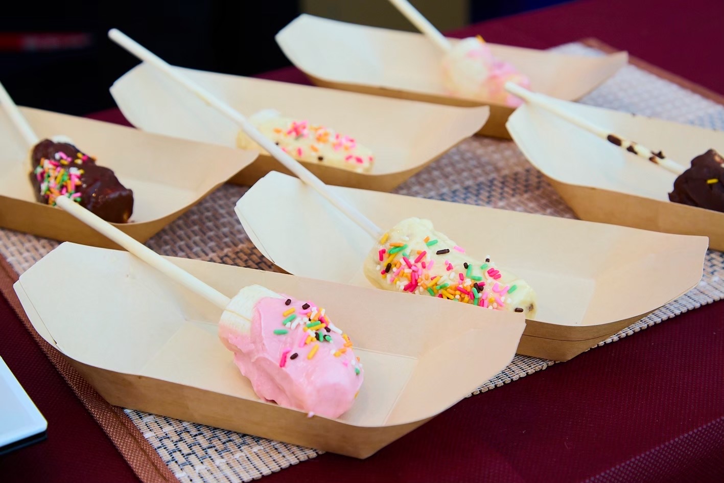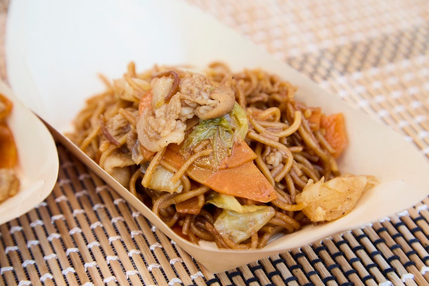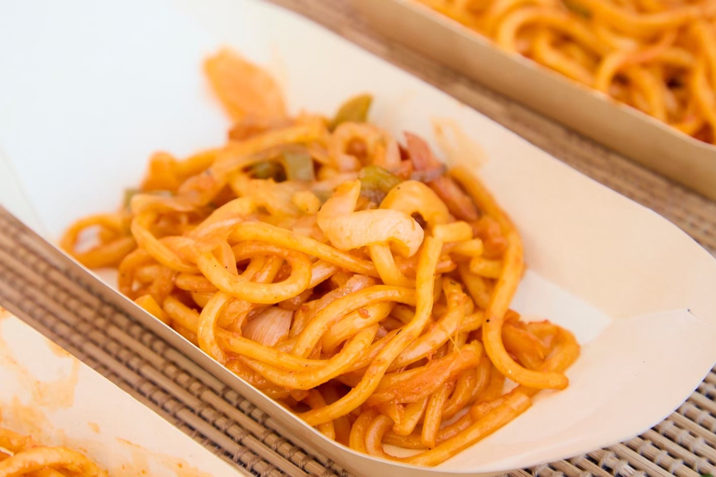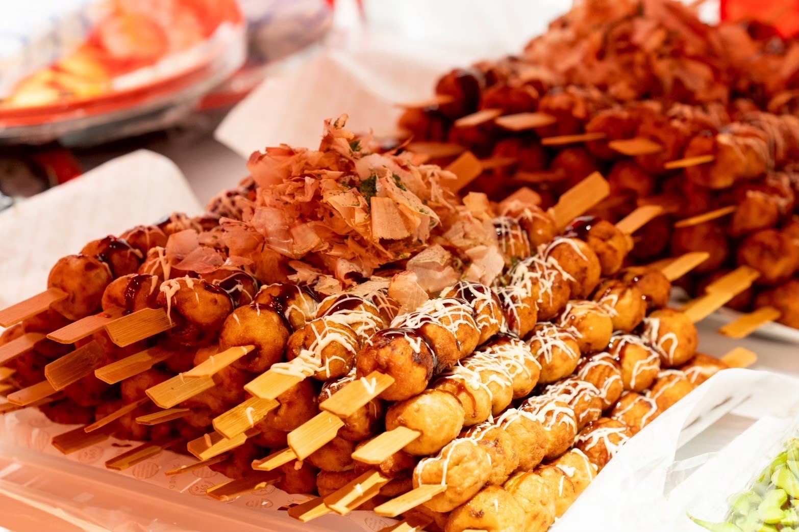 提供されるメニューは、焼きそば、たこ焼き、お好み焼き、チョコバナナといった「縁日屋台の定番」が中心。NEO DINING.では、かき氷機を持ち込んでその場で出来たてを提供したり、ドリンクを氷水の入った桶にドブ漬けして冷やしたりと、お祭り特有のライブ感を大切にしています。