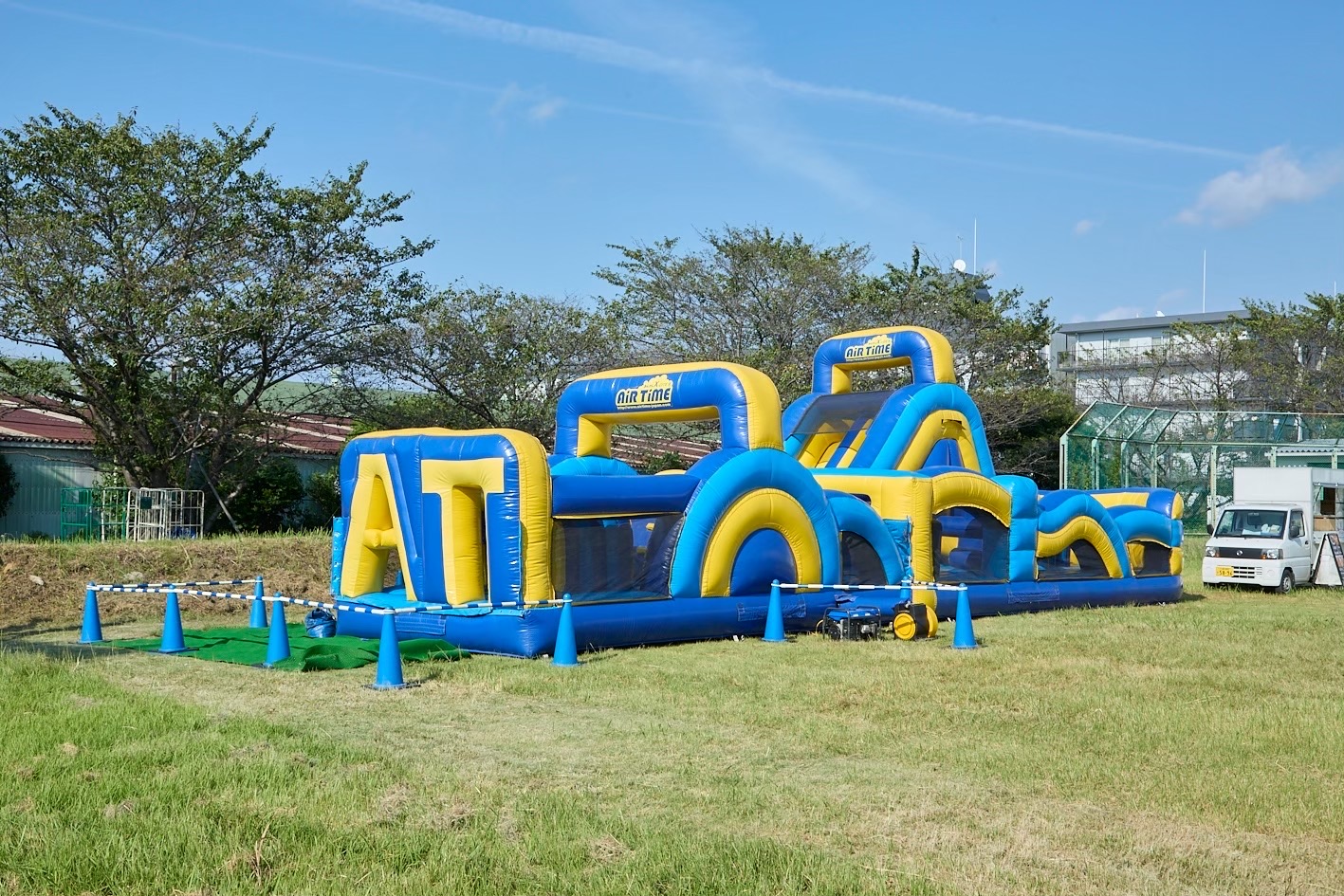 子供に大人気のエア遊具の貸出しもおまかせください!屋外のファミリーデーや夏祭りにおすすめです。