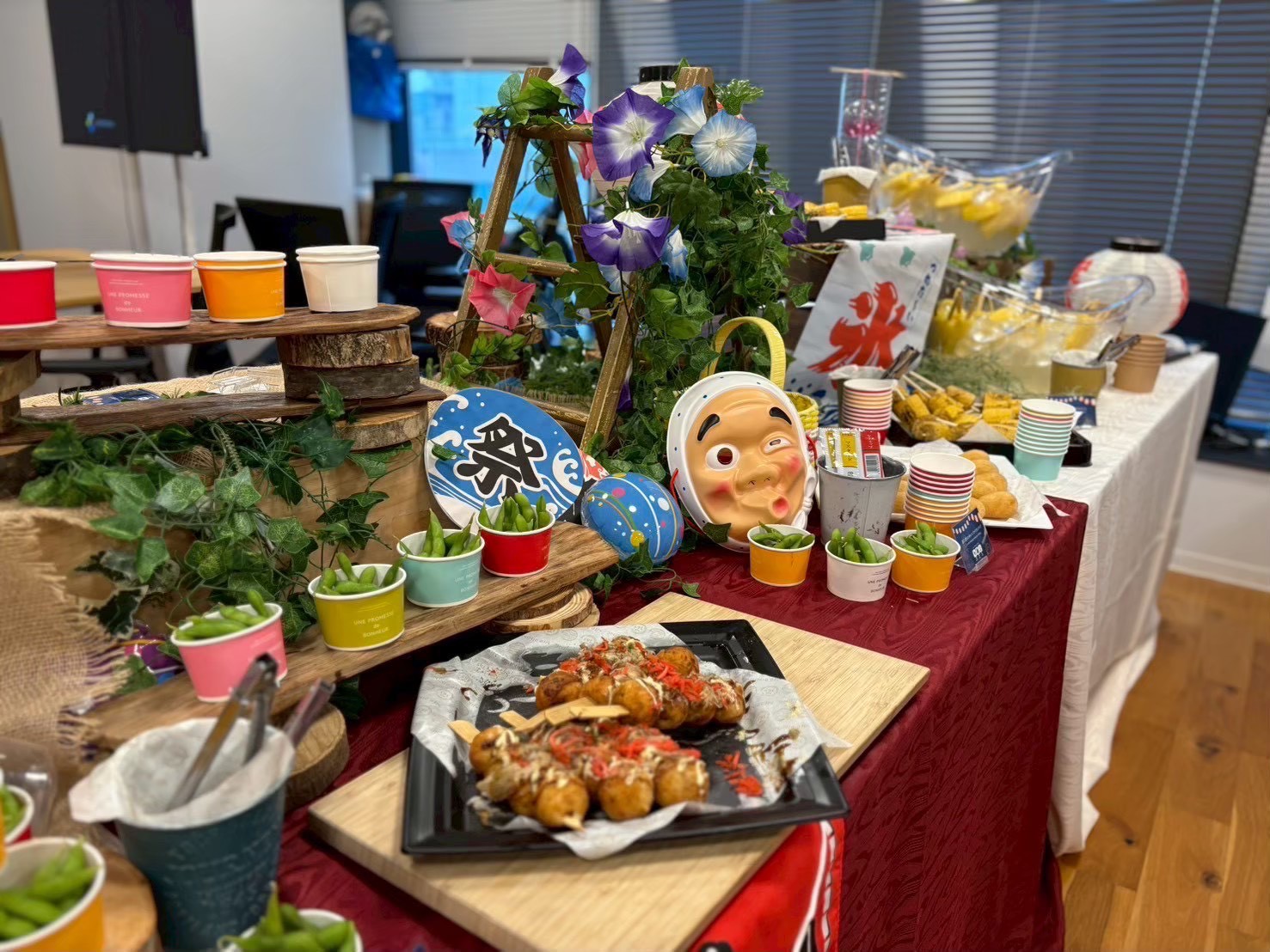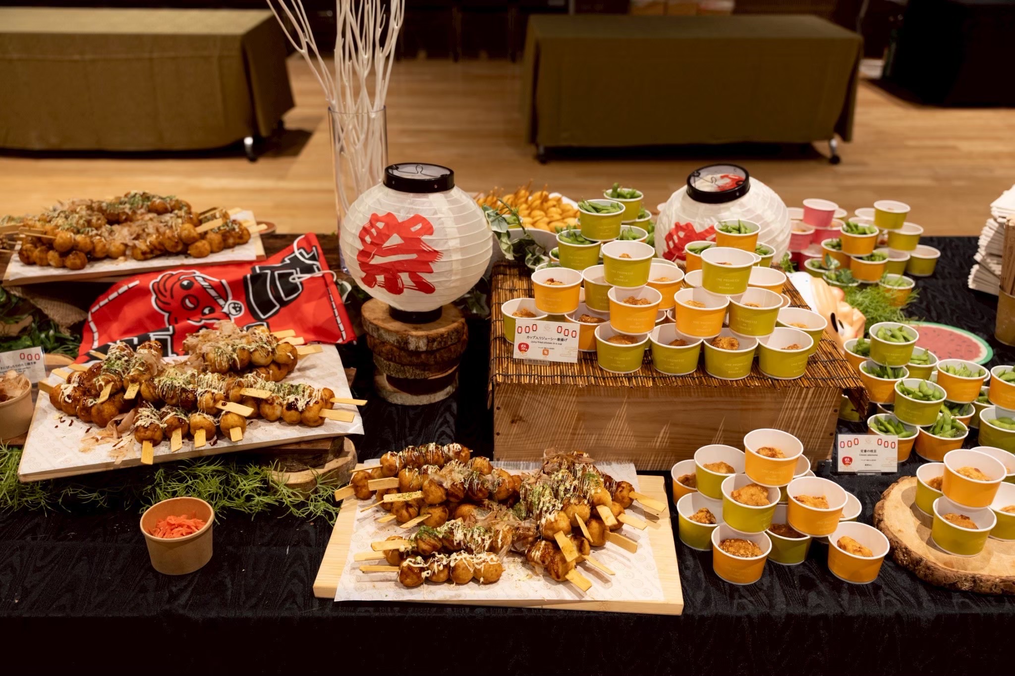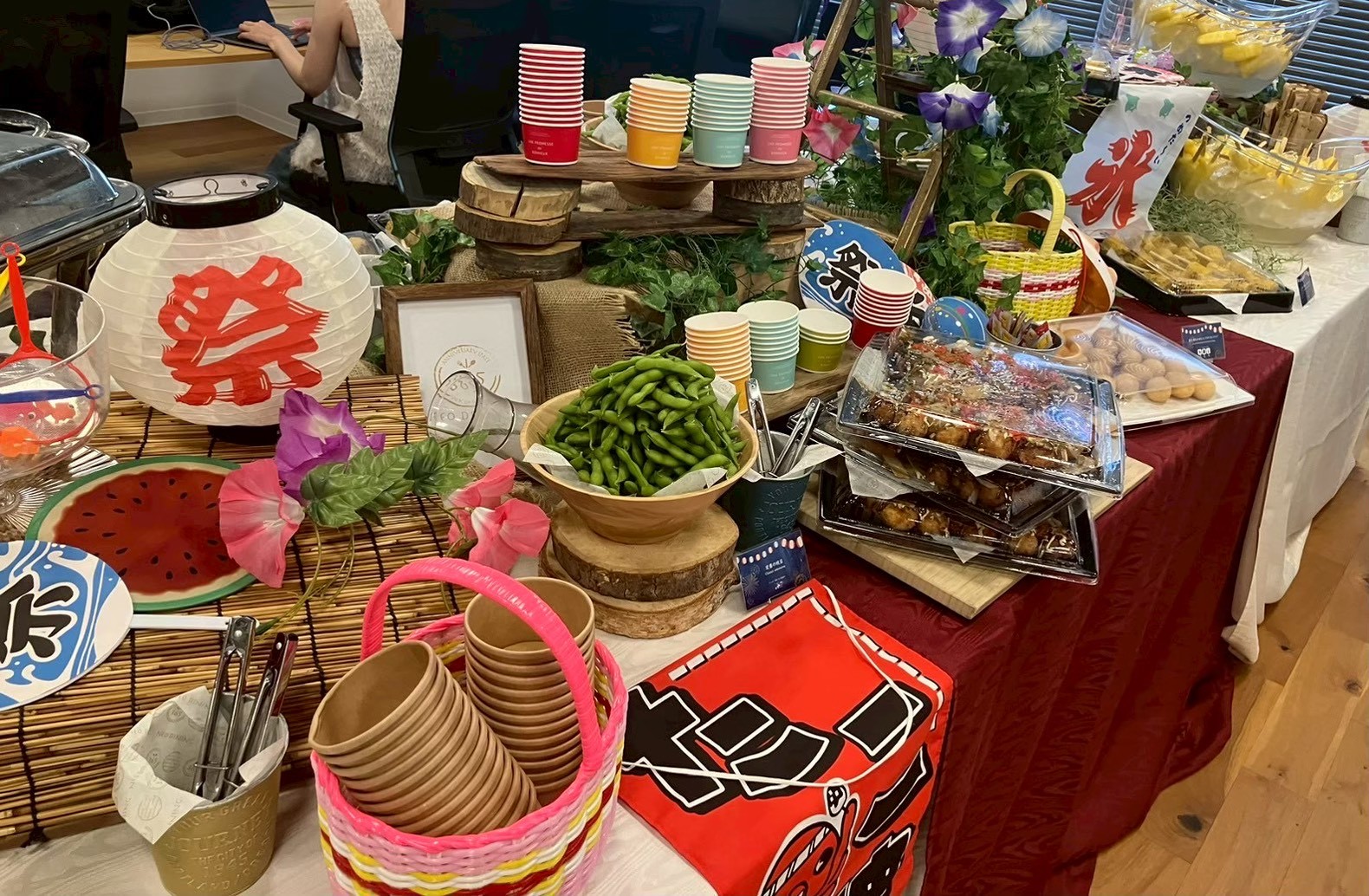まるでオフィスや会場が縁日に変わったかのような“映える”空間と、“盛り上がる”お祭りメニューが一体に。企画から装飾、提供までワンストップでお任せいただけるため、幹事様のご負担も最小限に抑えつつ、インパクトあるイベントが実現可能です。