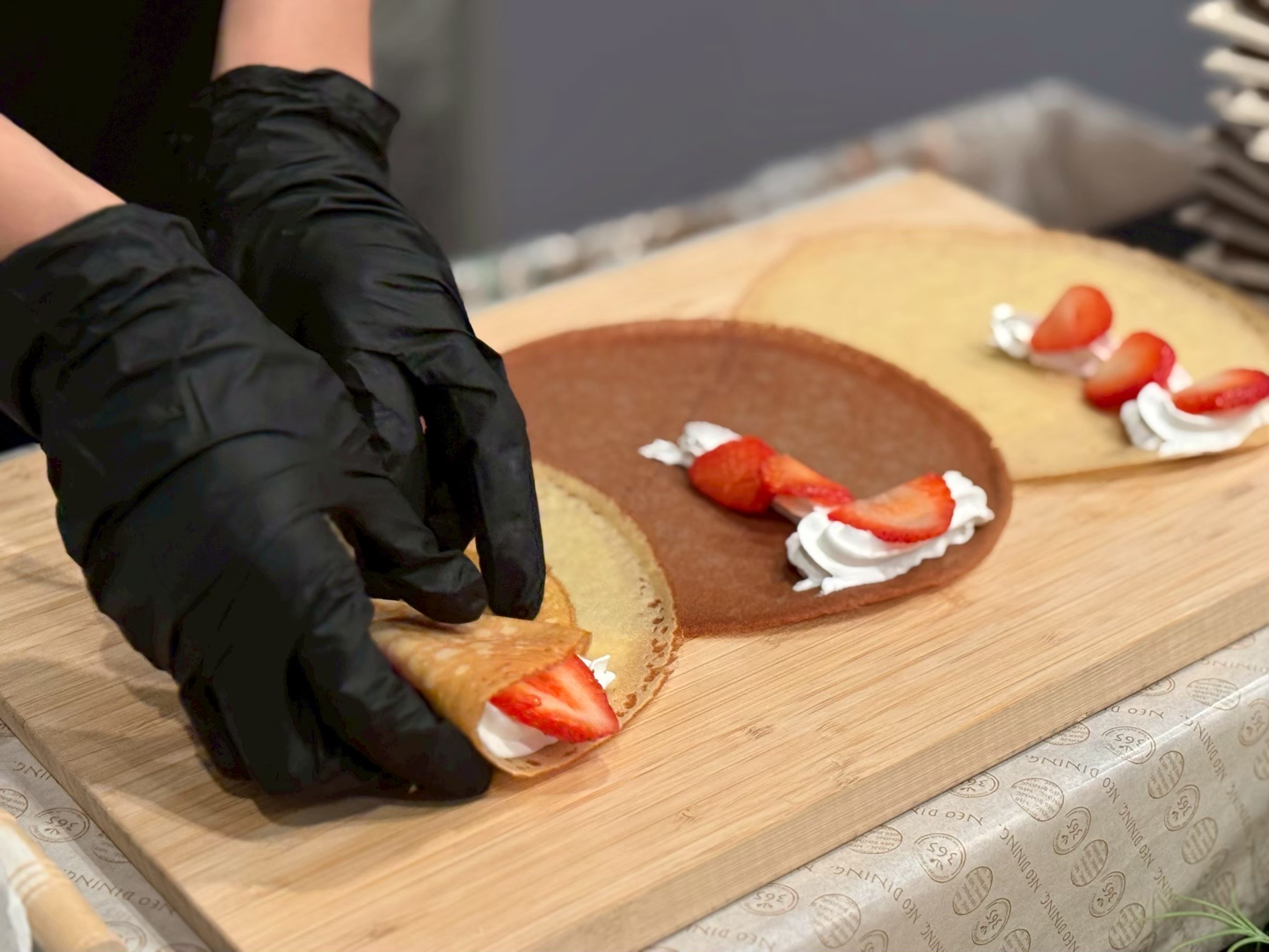 4種類のお味からチョイスOK!ふわふわのクレープ生地を使ってスタッフが現地でお作りします。