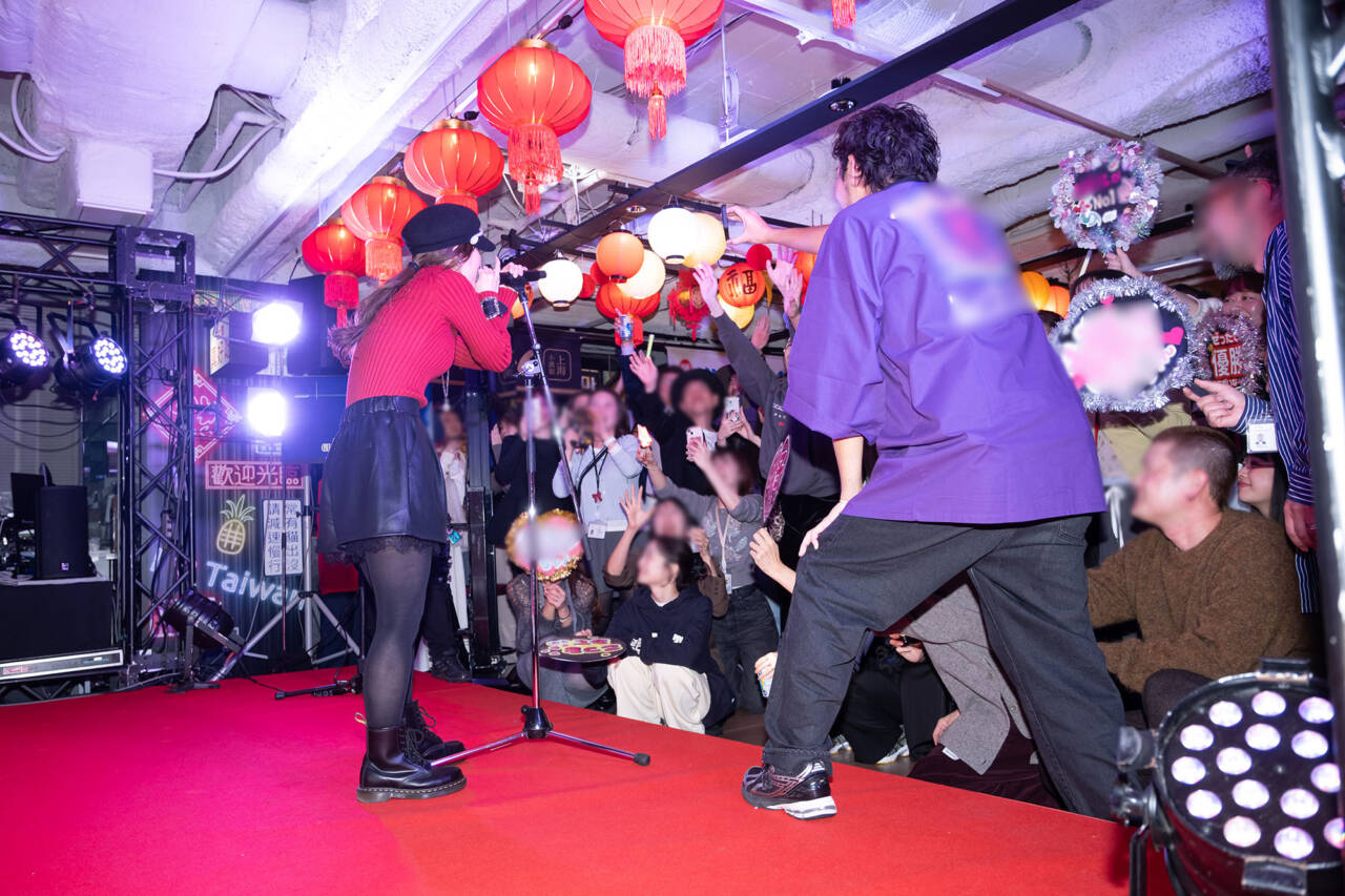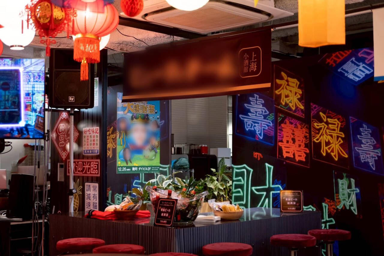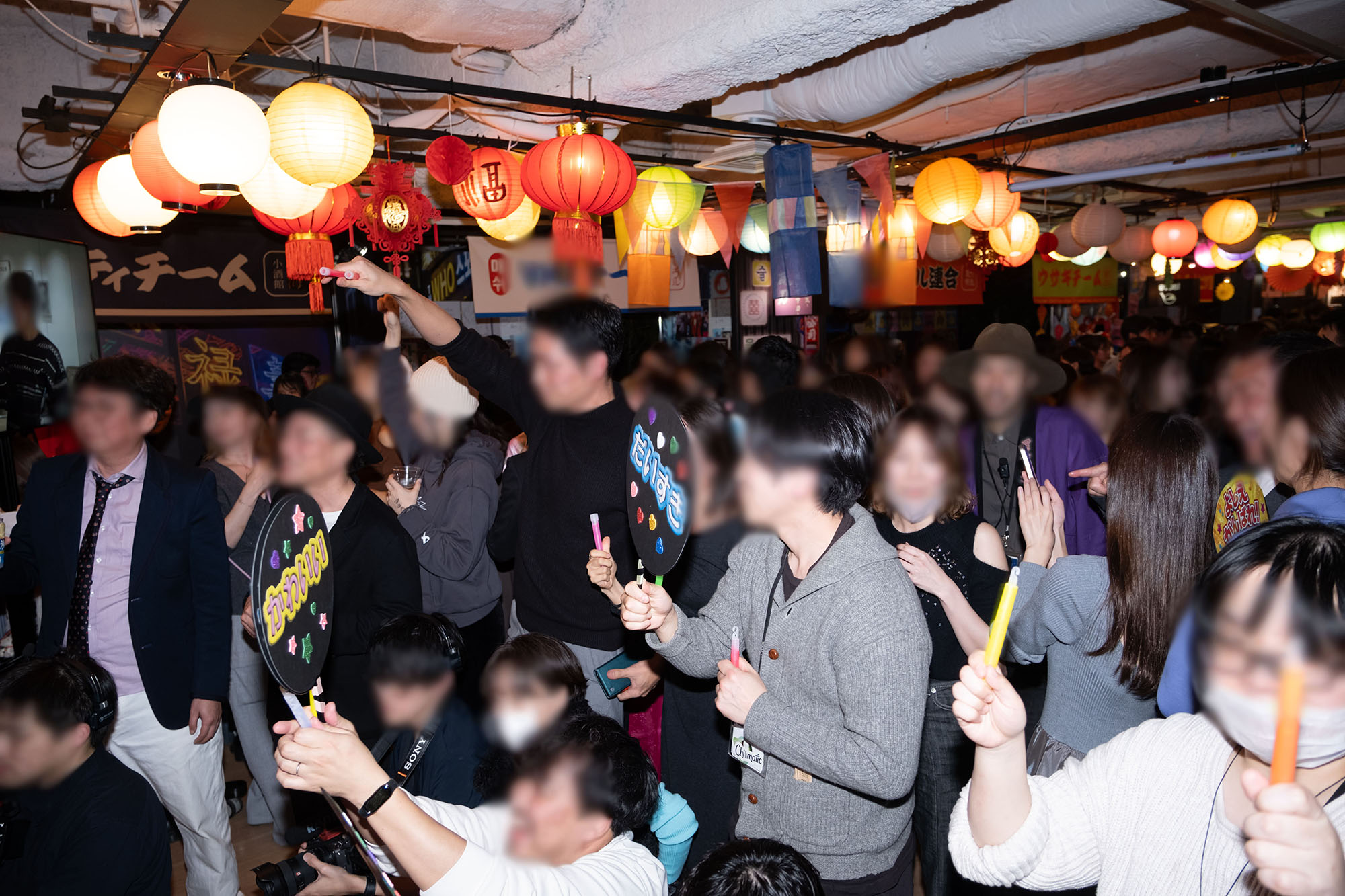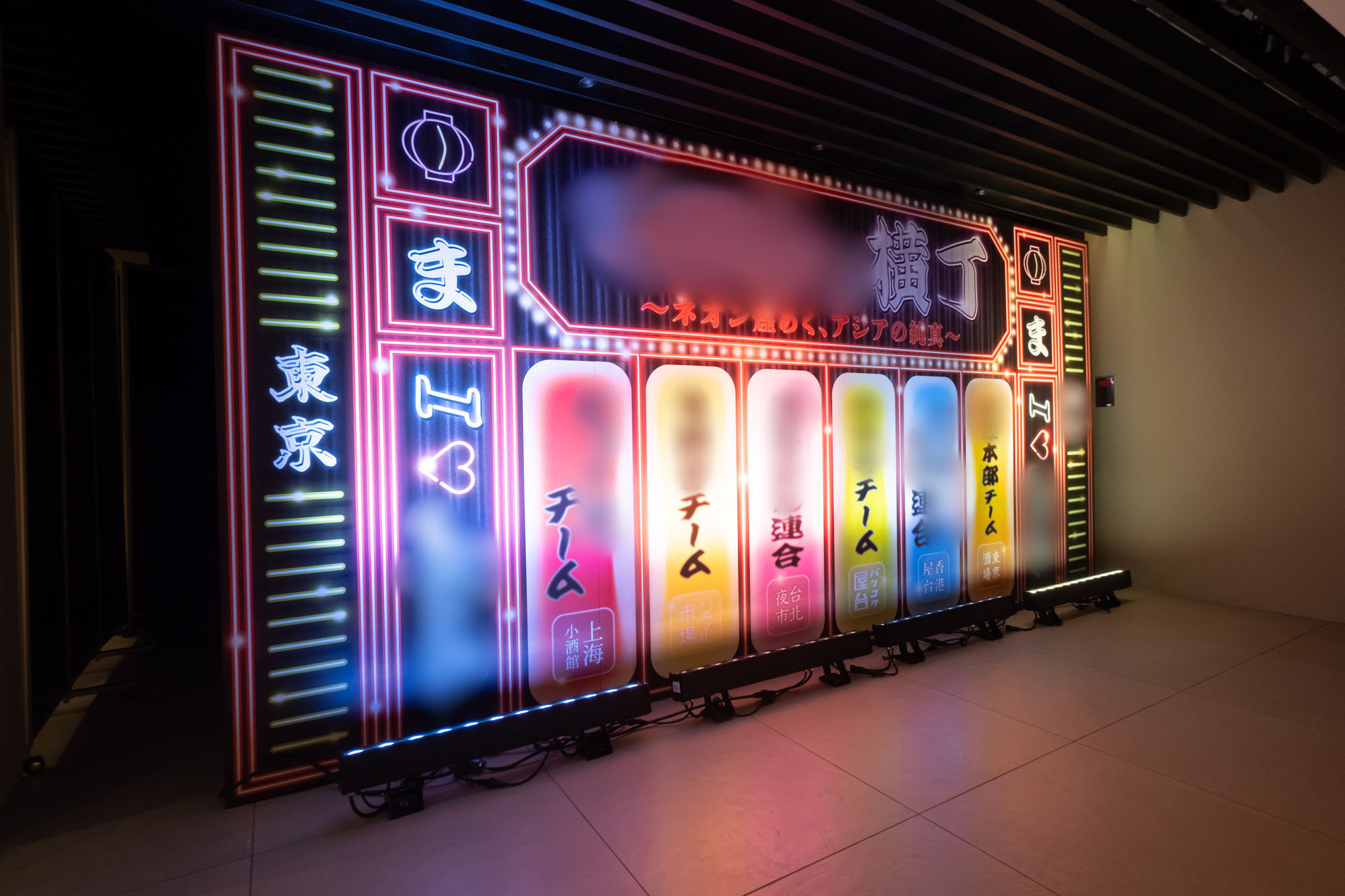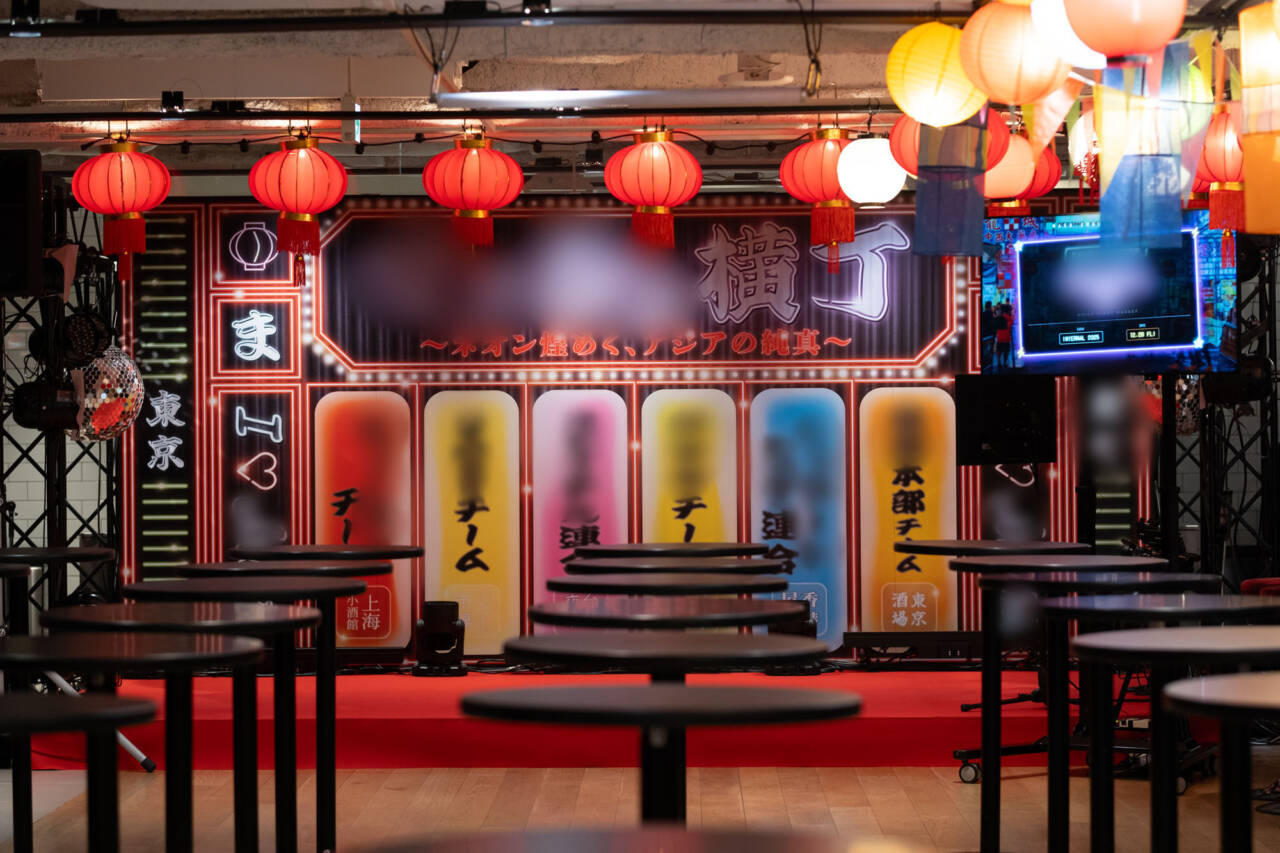 会場全体はネオンカラーを基調に、提灯やサイン装飾を効果的に配置。