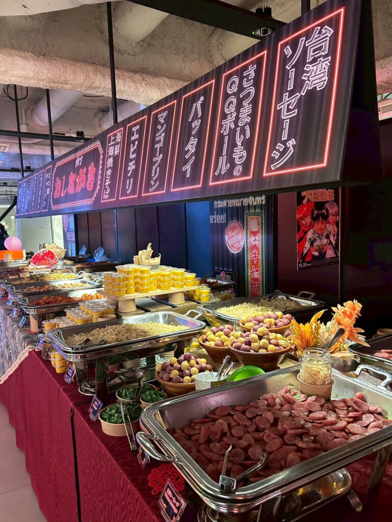 フードはアジア各国のストリートフードをモチーフに、横丁の世界観と連動するオリジナルケータリングとして再構築。