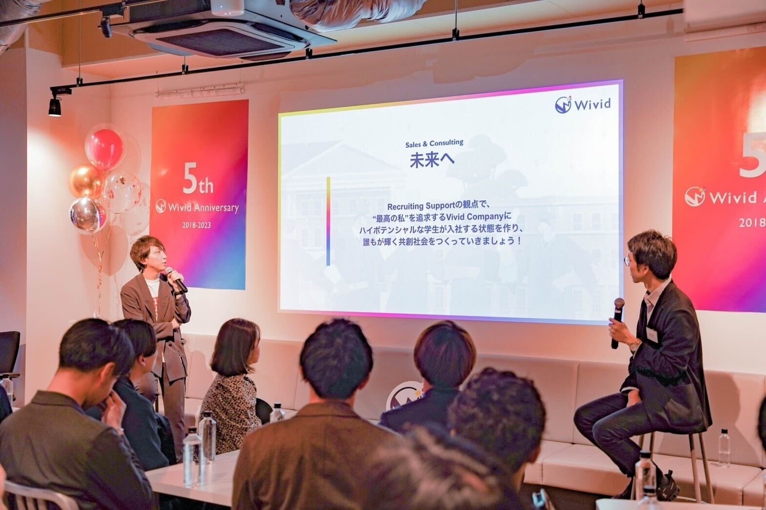 当該イベントでは、ウィビッドの長期インターン生を卒業し、全国各地の企業で活躍する多くのOB、OGも参加されて、参加者がクイズ形式でウィビッドの歩みを振り返るコーナーなど、終始和やかな雰囲気で盛り上がっていました。